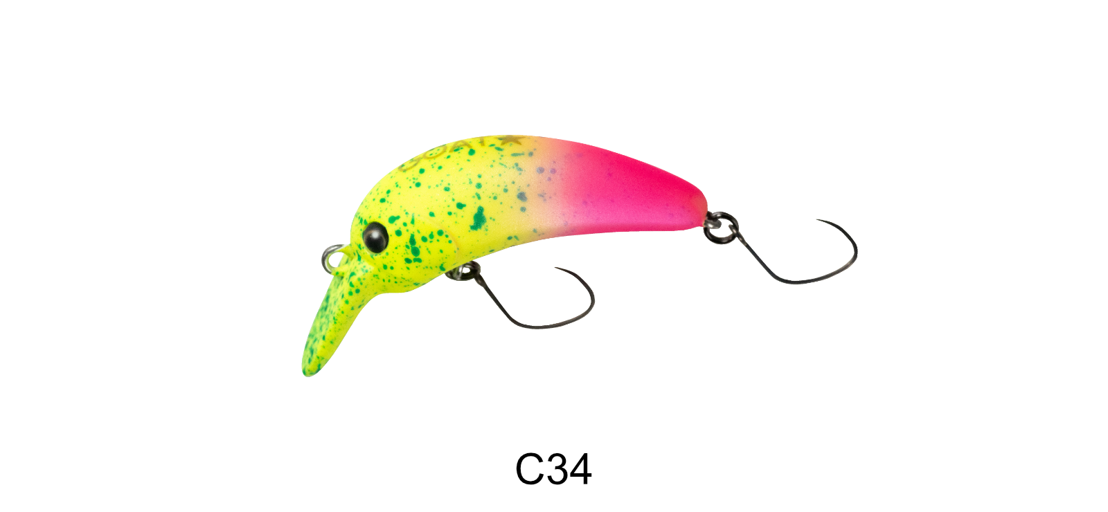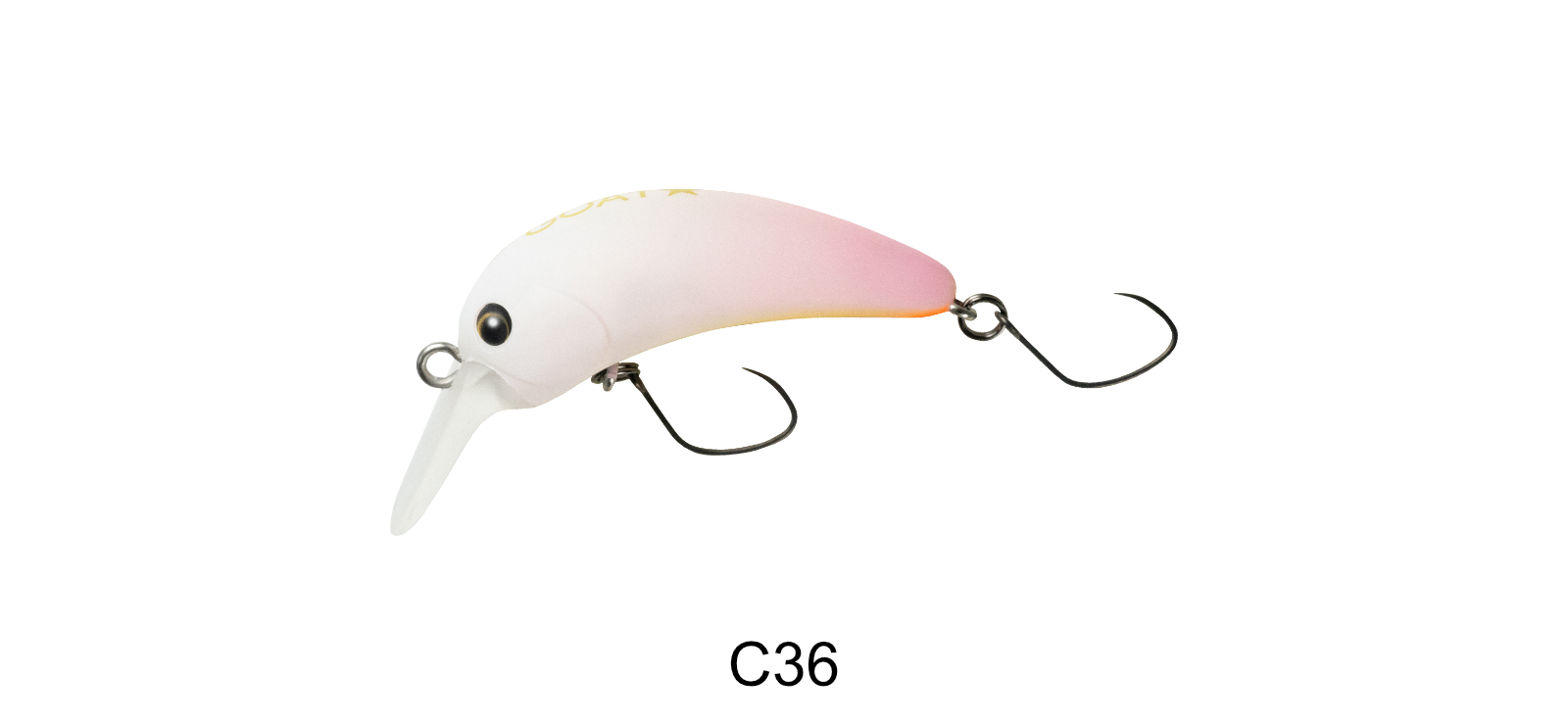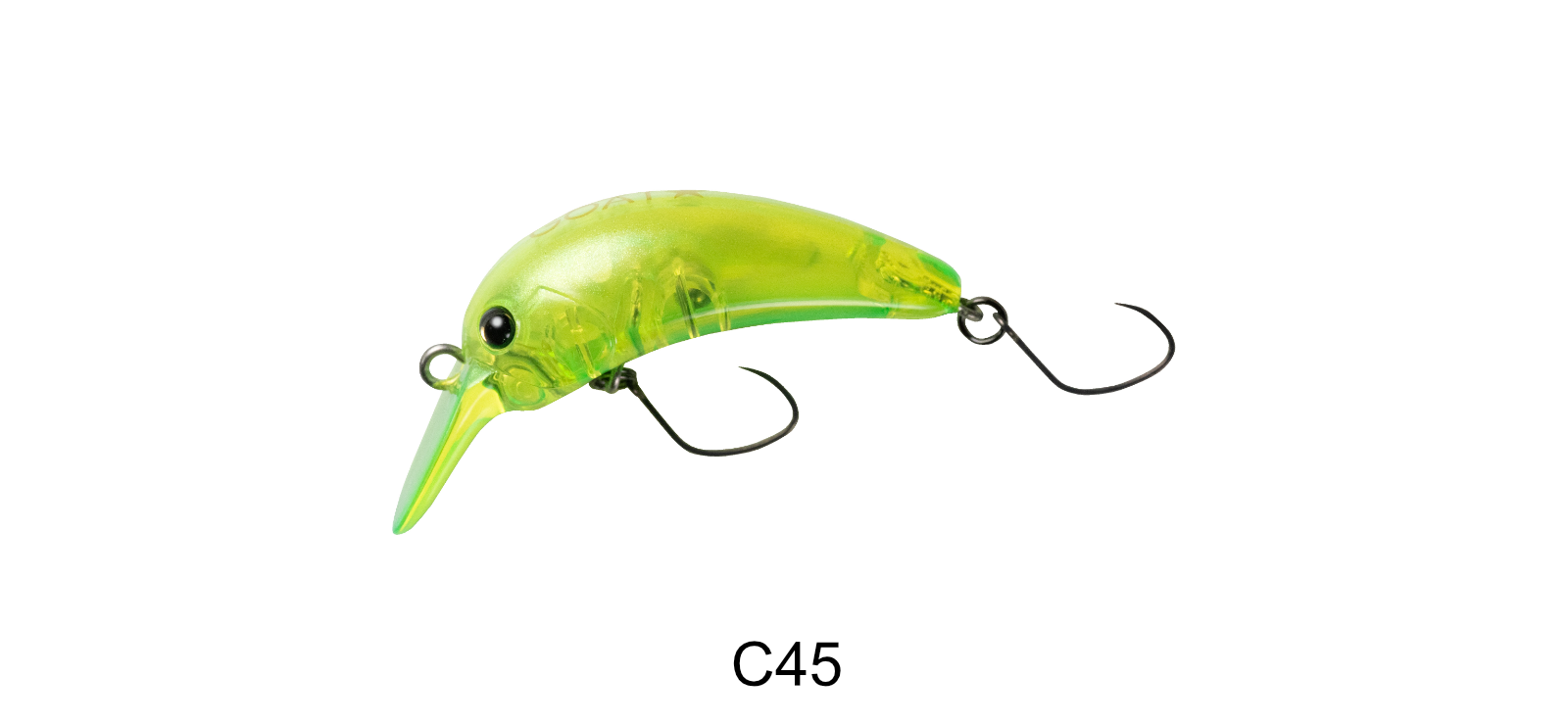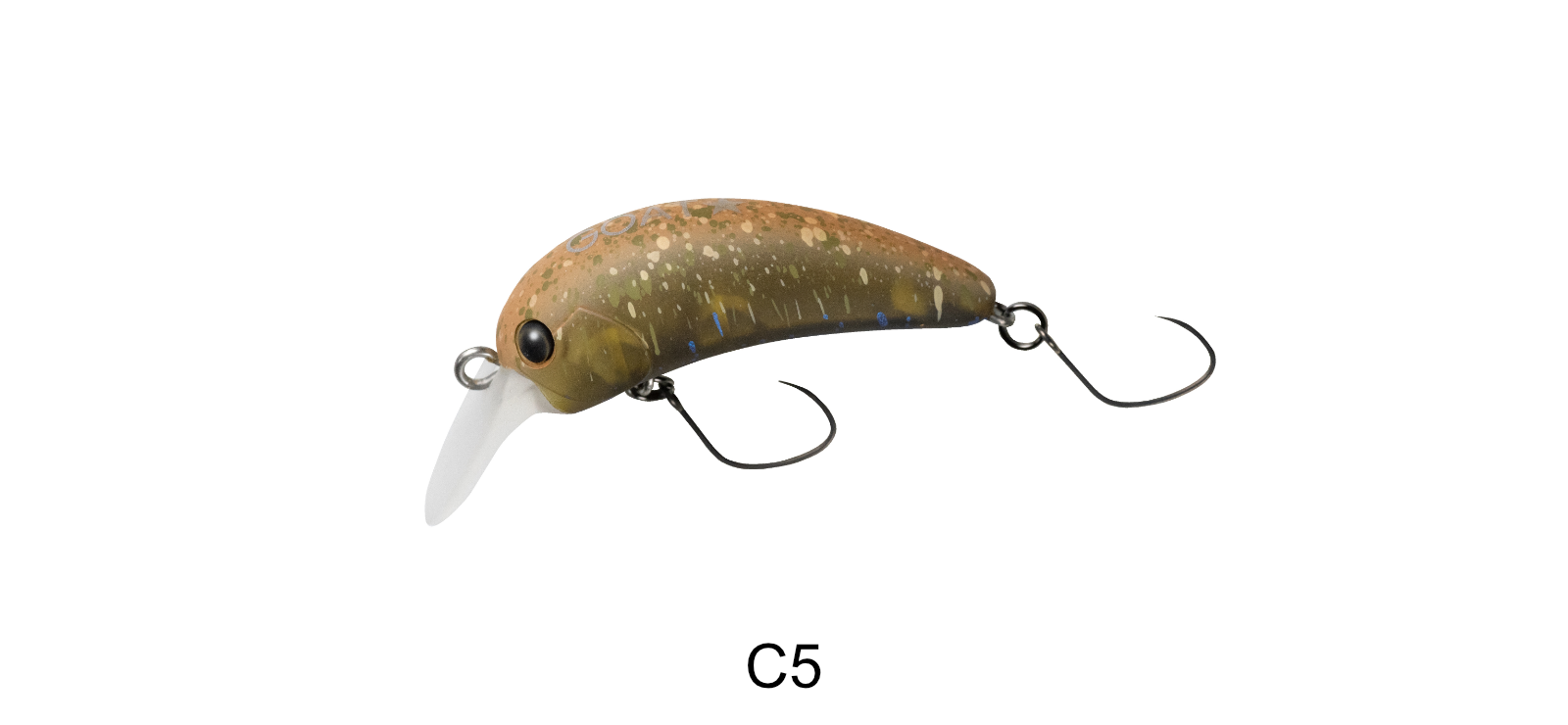 This crankbait was developed to target the range from 15cm to 50cm below the surface. With strong water resistance and a wide wobbling action, it powerfully attracts low-activity trout. Start by retrieving at an ultra-slow to slow speed. It is designed to prevent rolling even at a fast retrieve, allowing for versatile fishing techniques.